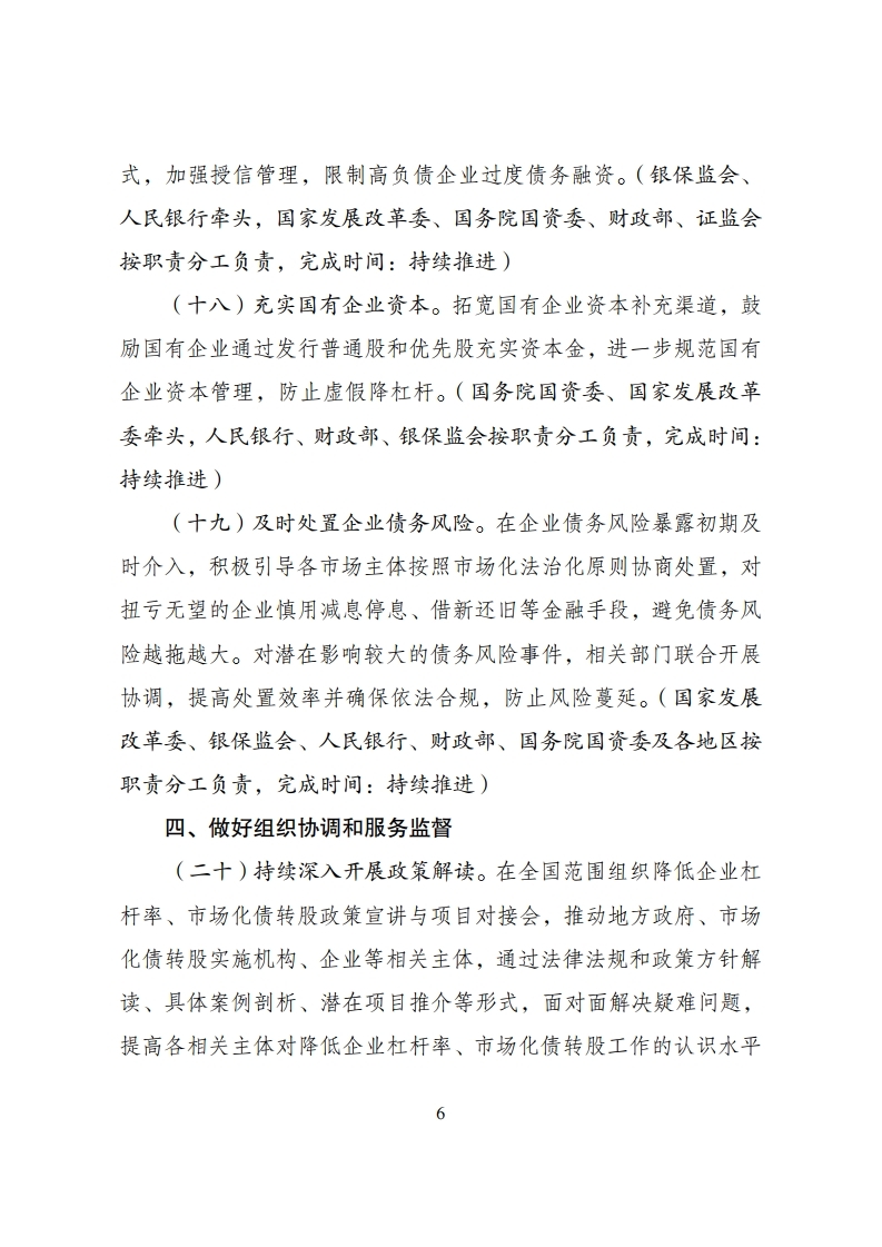 各省、自治區、直轄市、計劃單列市人民政府,新疆生產建設兵團,積極穩妥降低企業杠桿率工作部際聯席會議各成員部門和單位、審計署,國有大型商業銀行、股份制商業銀行: